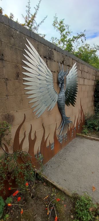 The phoenix was created out of galvanised steel and corten steel for the flames below. The project has already secured significant community support, with all of the phoenix’s feathers now accounted for.